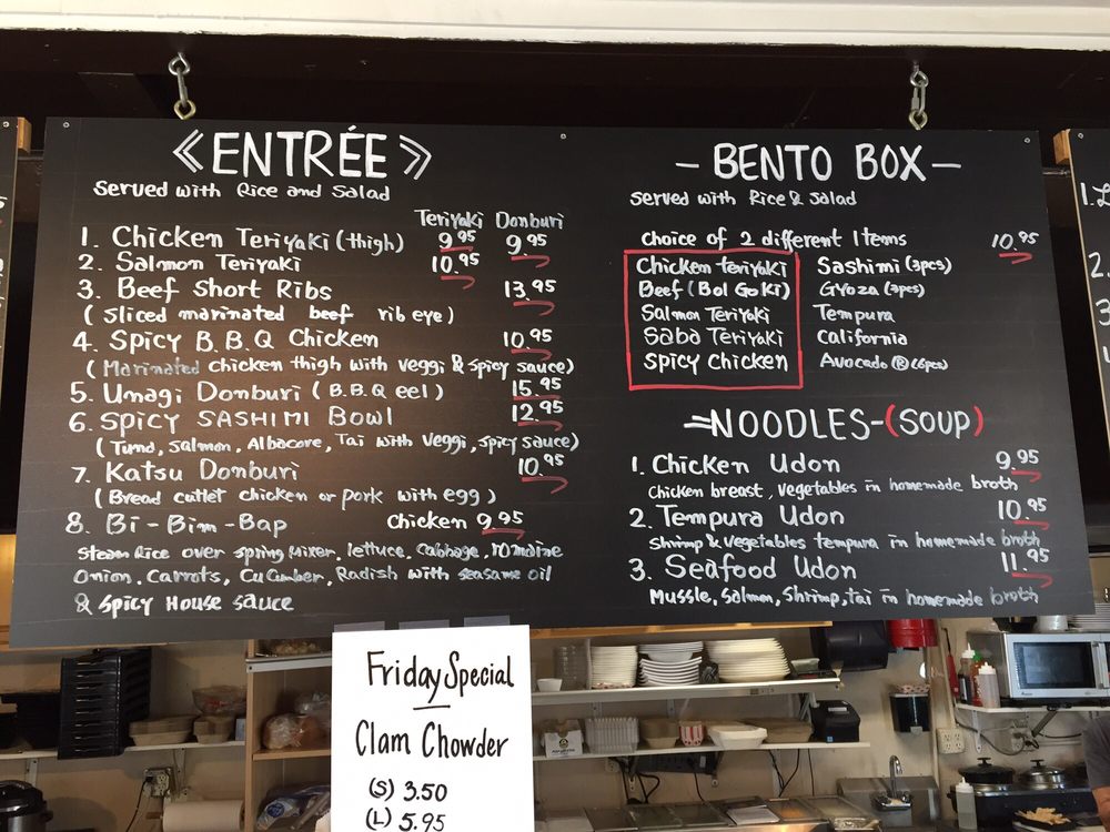 Chicken teriyaki, salmon teriyaki, saba shiyoyaki,. Served with rice and salad.